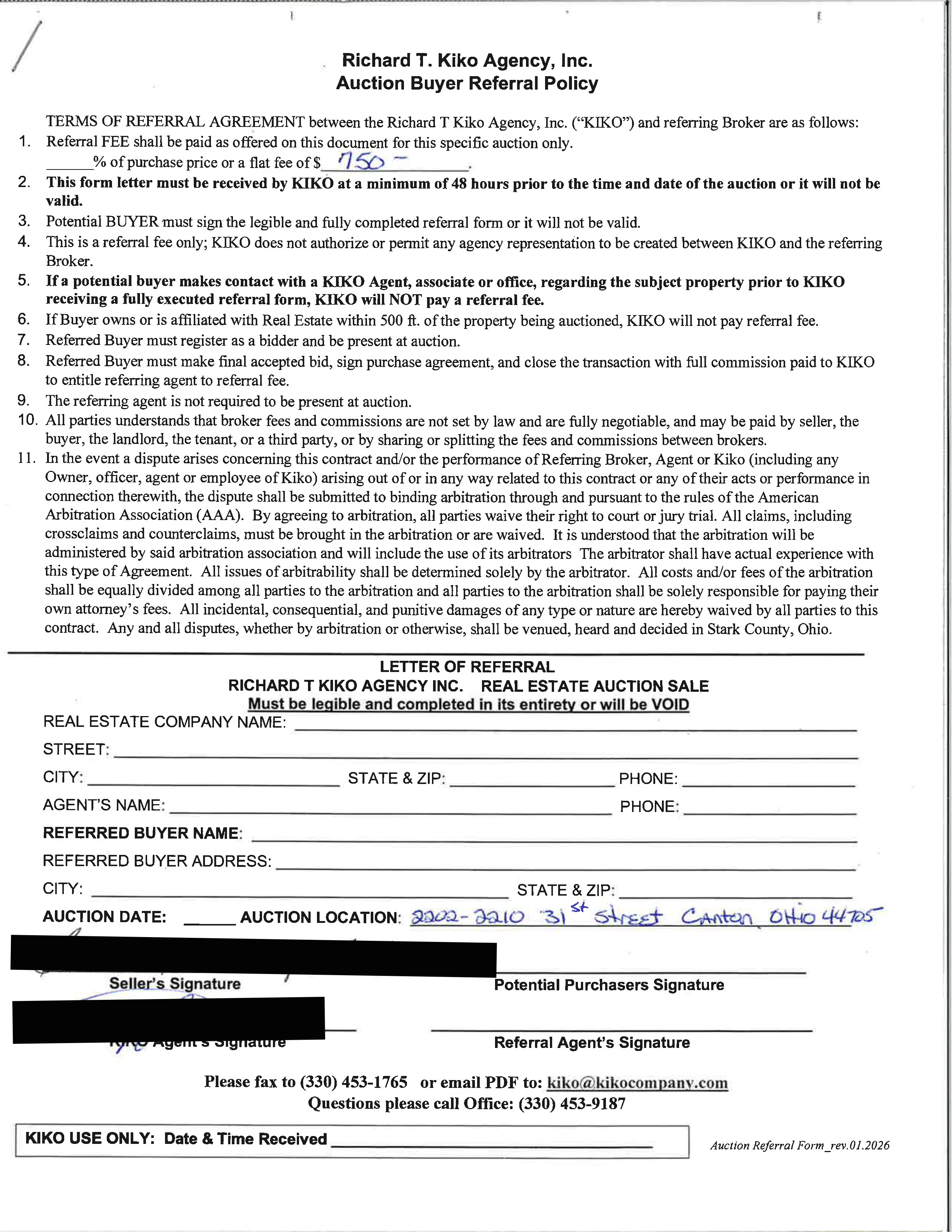 10% down auction day, balance due at closing. A 10% buyer’s premium will be added to the highest bid to establish the purchase price. Any desired inspections must be made prior to bidding. All information contained herein was derived from sources believed to be correct. Information is believed to be accurate but not guaranteed.