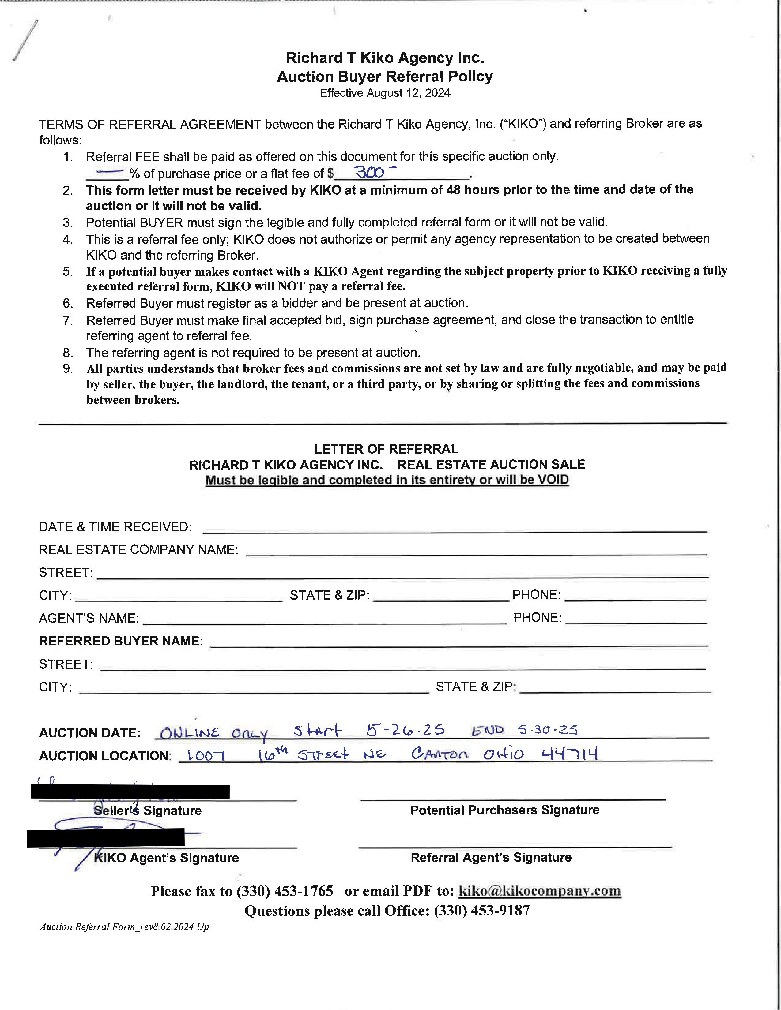 10% down auction day, balance due at closing. A 10% buyer’s premium will be added to the highest bid to establish the purchase price. Any desired inspections must be made prior to bidding. All information contained herein was derived from sources believed to be correct. Information is believed to be accurate but not guaranteed.