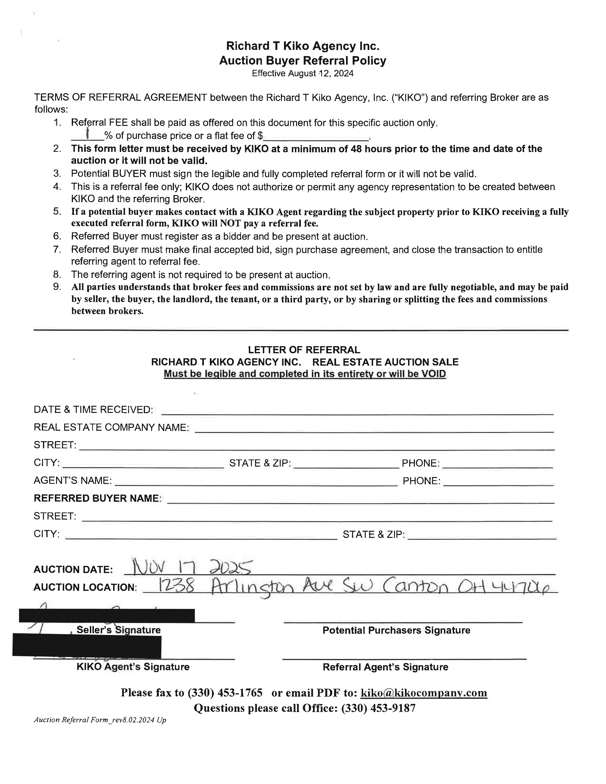 10% down auction day, balance due at closing. A 10% buyer’s premium will be added to the highest bid to establish the purchase price. Any desired inspections must be made prior to bidding. All information contained herein was derived from sources believed to be correct. Information is believed to be accurate but not guaranteed.