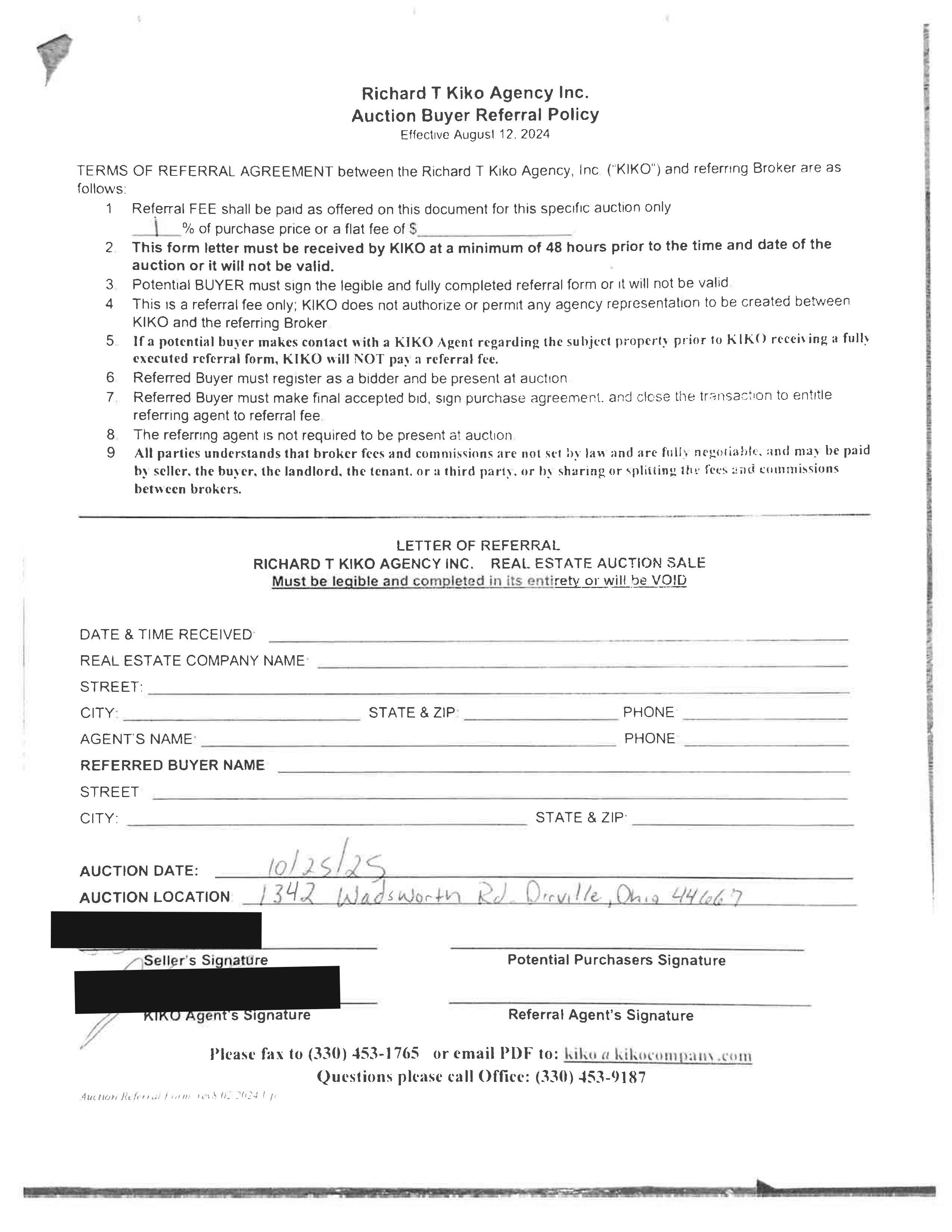Horse Barn. 36’x36’ with 5 stalls, tack room, and adjoining pasture, ideal for 4-H projects. Half year taxes are $4,354.00. Wayne Co. parcel #32-00318.003, #32- 00318.002 #27-01535.001. All mineral rights owned by seller to transfer.