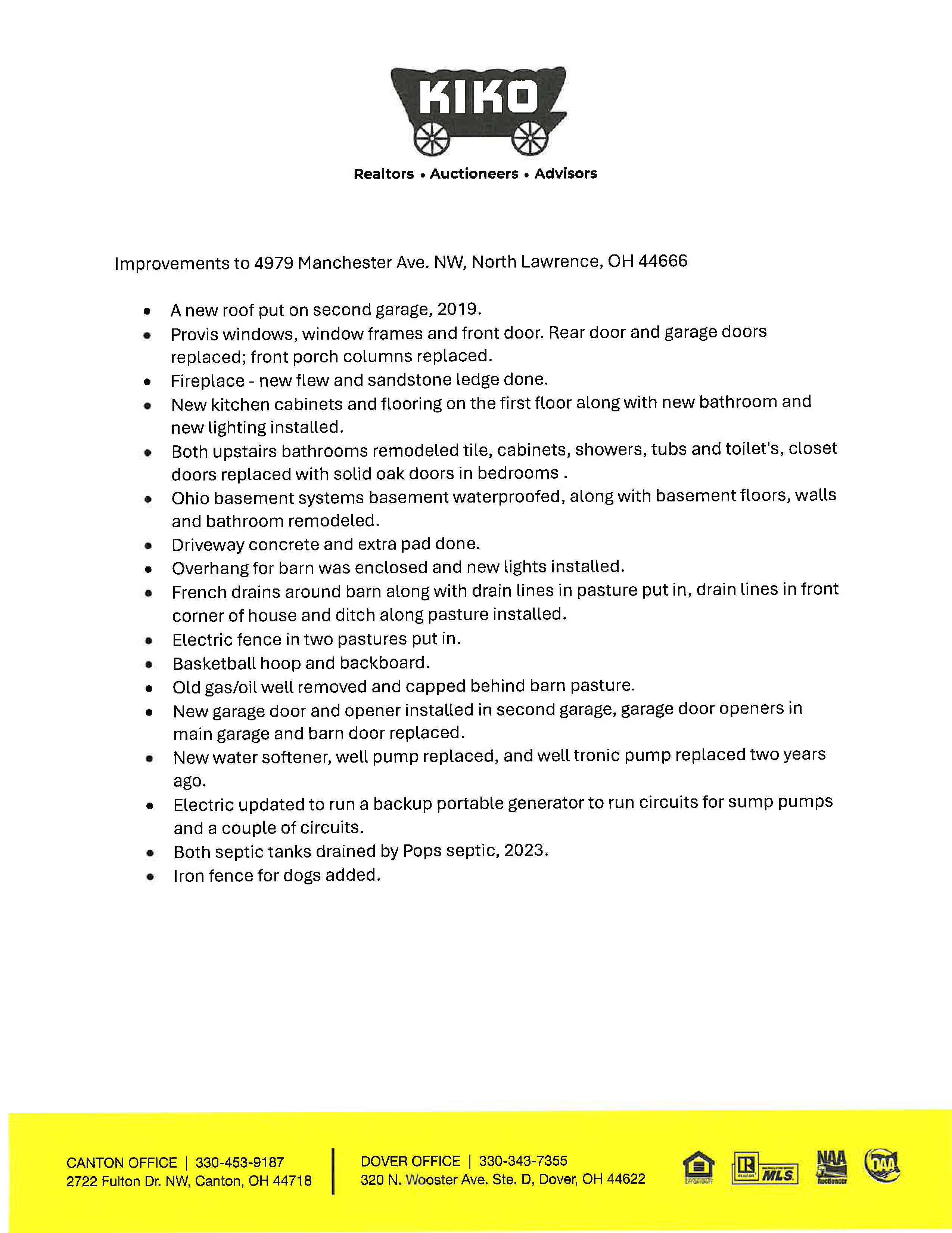 Real Estate. Welcome to this meticulously maintained, turnkey, country estate on 6.5 acres. The quality, 2-story brick home boasts over 3,000 sq. ft. of living space and has been remodeled with top-of-the-line fixtures and upgrades from head to toe. The main floor of the home features a foyer entry, private office, half bathroom and dining room. The gourmet, eat-in kitchen with island is open to the spacious living room with wood burning fireplace and French doors that lead to the stamped concrete patio, perfect for entertaining. Off the kitchen is the mudroom with laundry that leads you into the 3-car attached garage. The second story has an impressive master bedroom suite with vaulted ceilings and a private bathroom that includes tile flooring, a walk-in shower, walk-in closet, and soaker tub. Three more bedrooms and a full bathroom complete the second floor. The basement is partially finished with a large room for entertaining, another full bathroom and storage room. Many updates have been completed since the home was purchased in 2017 including new kitchen, flooring, all new bathrooms, new Provia windows, Provia front door, finished basement, etc.! See complete list of updates on our website. Other improvements include a 30x32 drive-thru, detached garage with concrete floor and (2) overhead doors. The horse barn features 4 stalls, wash bay, hay loft and concrete floors. Electric fence in two pastures. All of this in Tuslaw School District! A must see! Stark Co. parcel #2411459. Bank financing available to qualified bidders. Call auctioneer for details on how to use your current home to buy this one!