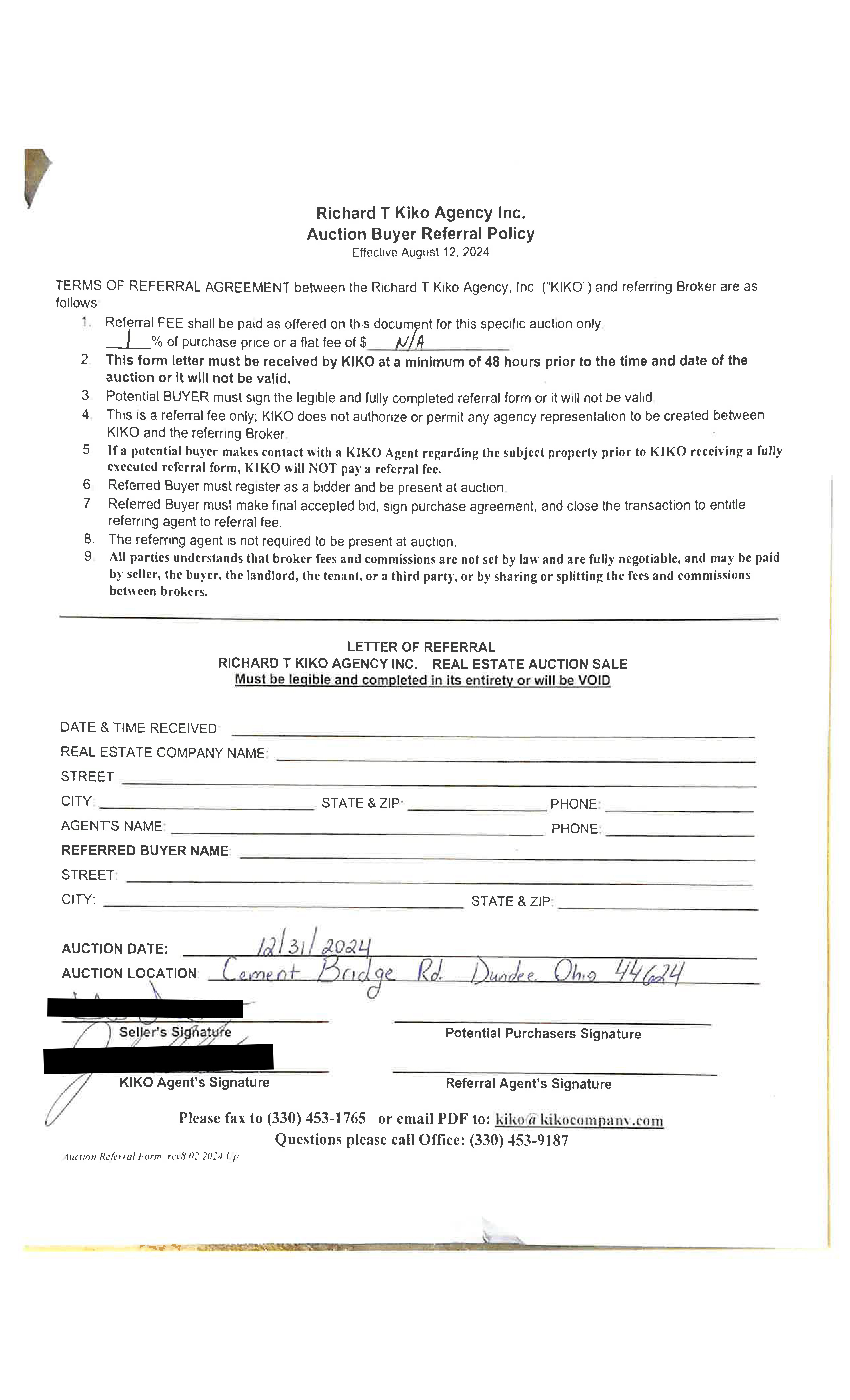 Directions: From SR 62 in Wilmont head south on Lawnford Ave. SW. In 2 miles turn right onto Chestnut Ridge Rd. NW. Follow for 1/3 mile and turn left onto Cement Bridge Rd. NW to auction location. Watch for KIKO signs.