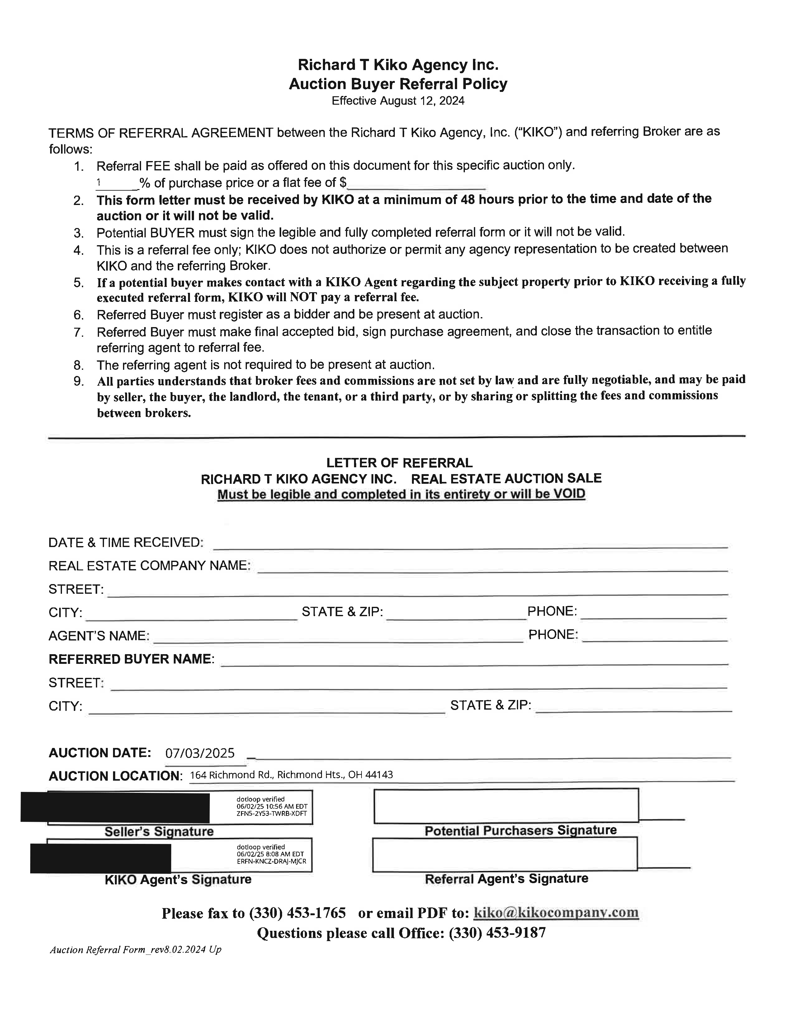 10% down auction day, balance due at closing. A 10% buyer’s premium will be added to the highest bid to establish the purchase price. Any desired inspections must be made prior to bidding. All information contained herein was derived from sources believed to be correct. Information is believed to be accurate but not guaranteed.