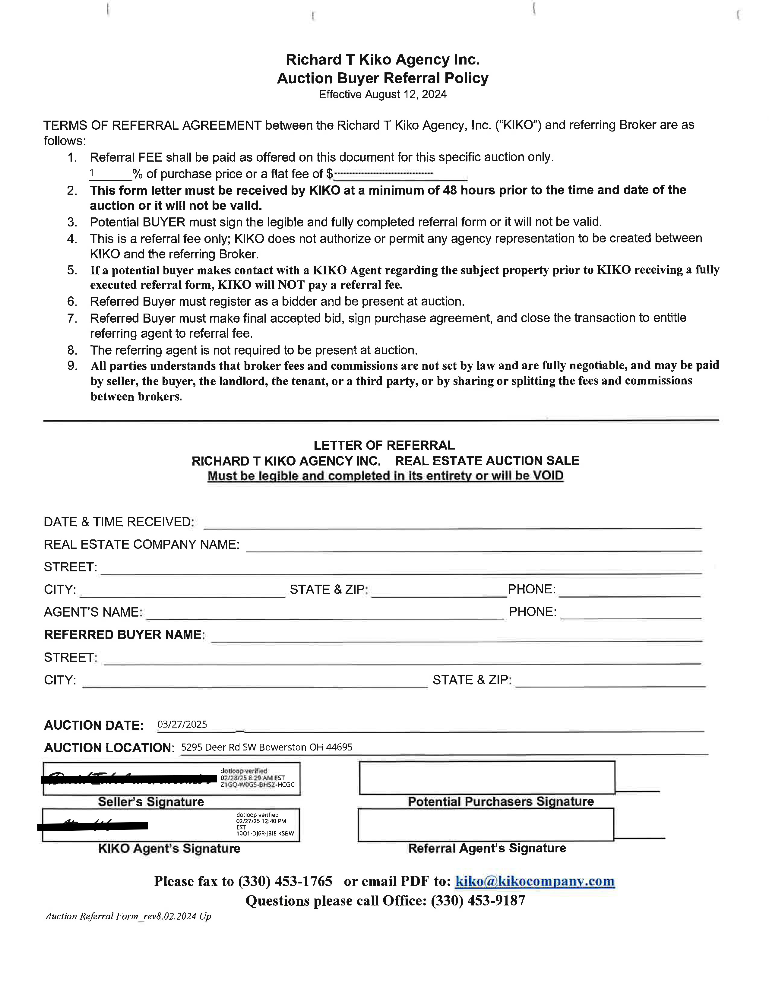 10% down auction day, balance due at closing. A 10% buyer’s premium will be added to the highest bid to establish the purchase price. Any desired inspections must be made prior to bidding. All information contained herein was derived from sources believed to be correct. Information is believed to be accurate but not guaranteed.