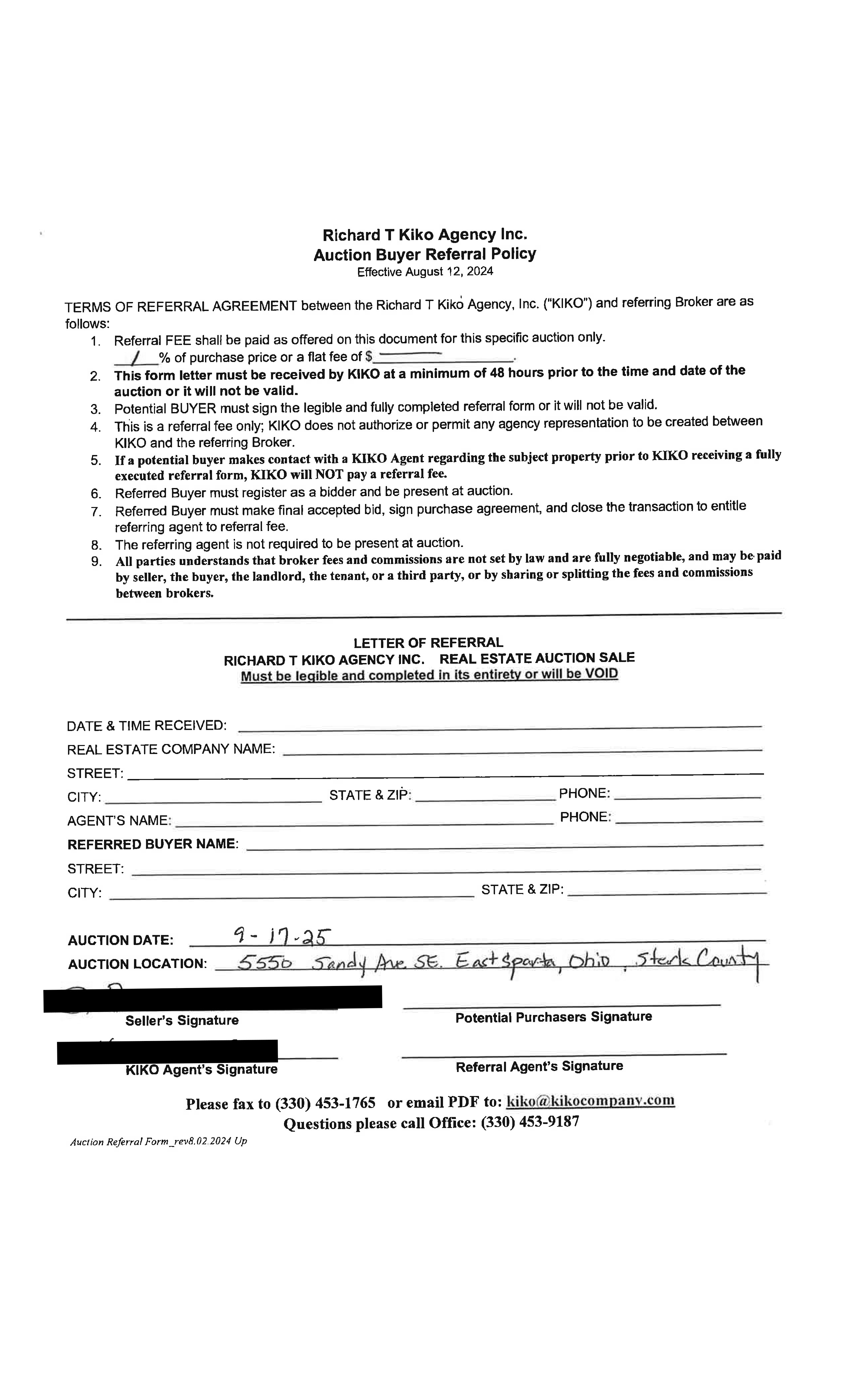 10% down auction day, balance due at closing. A 10% buyer’s premium will be added to the highest bid to establish the purchase price. Any desired inspections must be made prior to bidding. All information contained herein was derived from sources believed to be correct. Information is believed to be accurate but not guaranteed.