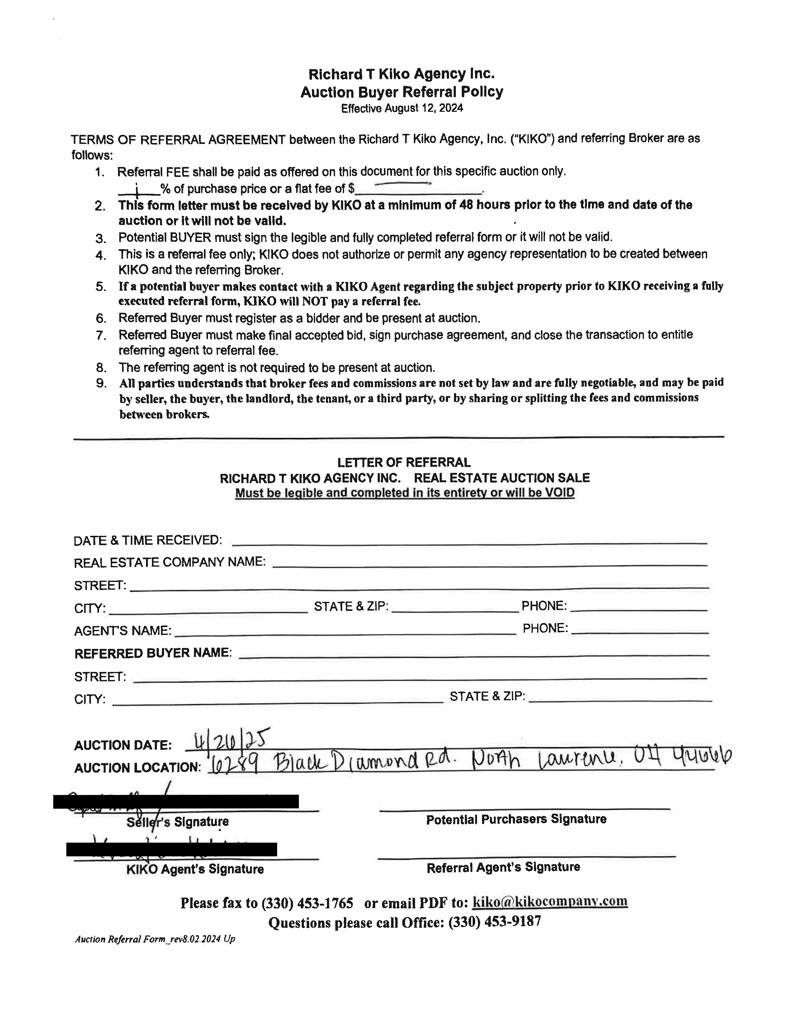 10% down auction day, balance due at closing. A 10% buyer’s premium will be added to the highest bid to establish the purchase price. Any desired inspections must be made prior to bidding. All information contained herein was derived from sources believed to be correct. Information is believed to be accurate but not guaranteed. Property to be offered as a Multi Par auction and sold whichever way it brings the most.